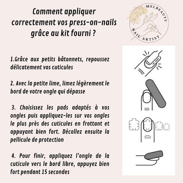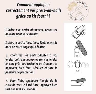 Les press on nails, ou ongles autocollants, sont des faux ongles pré-appliqués, conçus pour être facilement posés à domicile, en 10 minutes vous avez un résultat comme en institue.