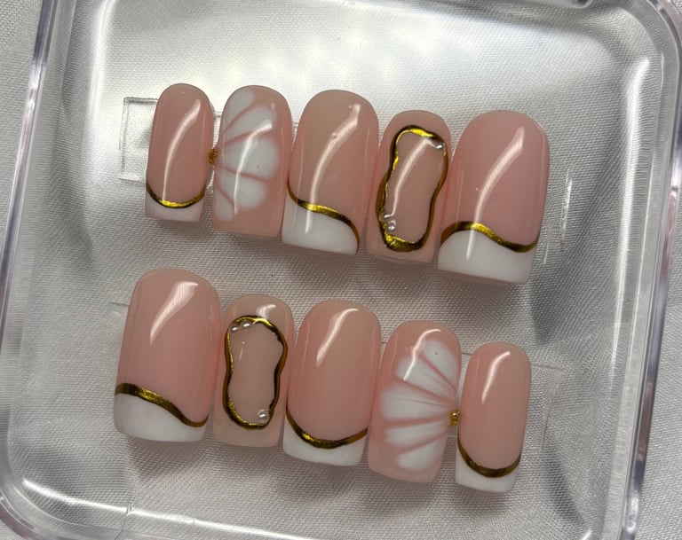 Découvrez mes créations uniques de press on nails faits main, conçues pour sublimer vos mains tout en étant réutilisables à l'infini.